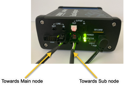 2。將分析儀單元插入要模擬所需的子節(jié)點(diǎn)位置的A 2 B網(wǎng)絡(luò)中。將單元連接到上游節(jié)點(diǎn),使用朝向MAIN,然后使用sub(如果不是最后一個(gè)節(jié)點(diǎn)),在STD或高PWR節(jié)點(diǎn)模擬器端口上,取決于仿真的節(jié)點(diǎn)的功率配置。