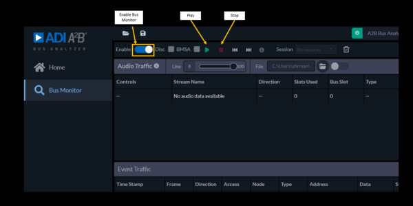 通過跑步啟動(dòng)2 B總線分析儀./a2b_bus_analyzer-X.Y.Z-channel-x86_64_linux.AppImage
